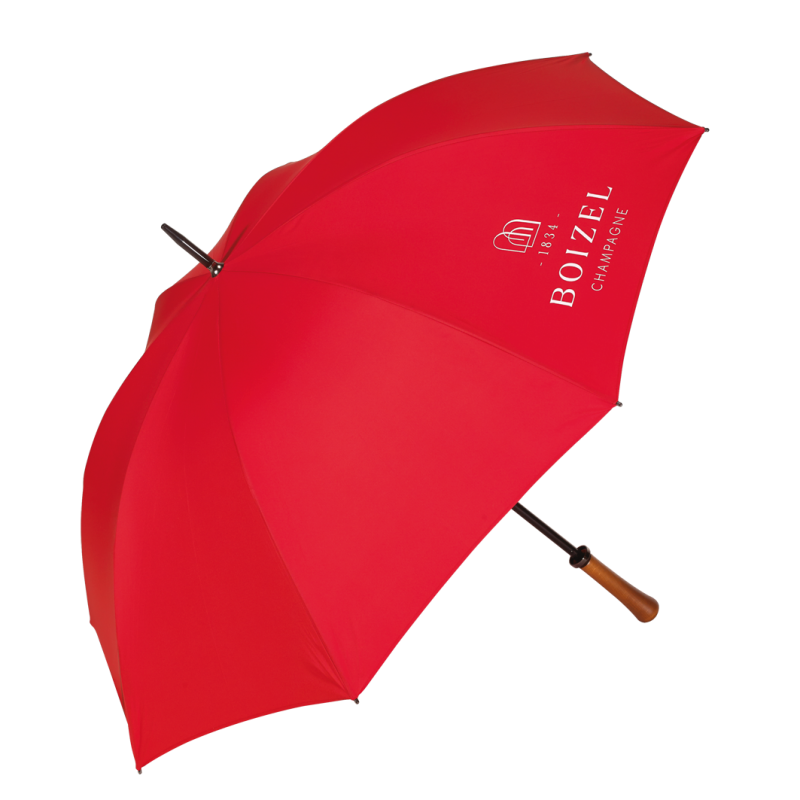 Parapluie Piganiol rouge de fabrication Française, signé des armes Boizel.